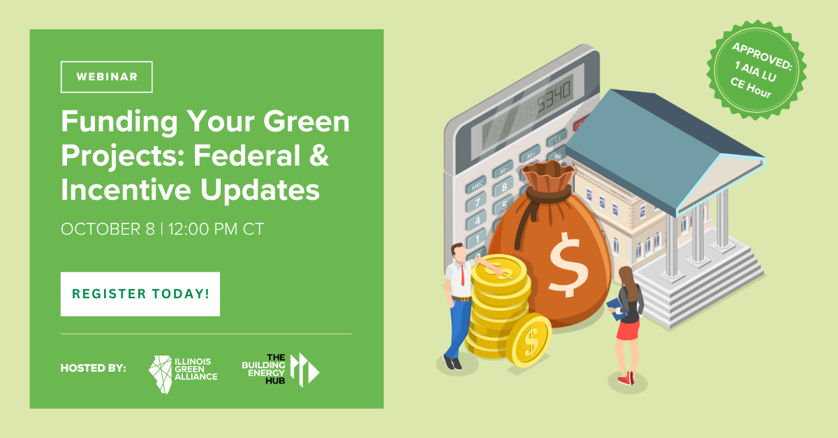 Join Illinois Green Alliance and the Building Energy Hub for a free interactive session exploring the latest tools, strategies, and real-world examples for financing sustainable development projects for both new construction and building retrofit projects. This webinar will equip attendees with practical knowledge of current federal incentives, financing structures, and lessons learned from industry leaders.