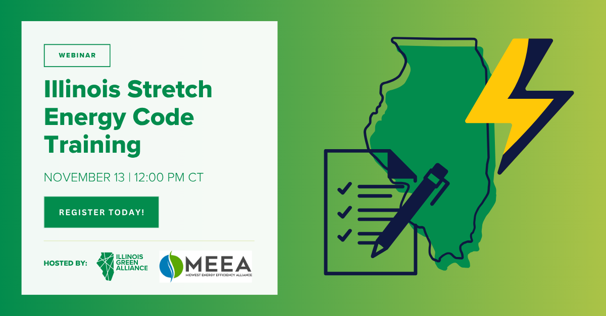 Join Illinois Green Alliance and Midwest Energy Efficiency Alliance for an in-depth look at Illinois’ Energy Stretch Code - what it is, how it works, and what it means for your community or business. We’ll break down the code’s goals, highlight key changes from the base energy code, and discuss how adopting the Stretch Code can improve building performance, lower energy costs, and support Illinois’ climate goals. Whether you’re a municipal official, builder, architect, or energy professional, this session will provide practical guidance and resources to help you prepare for implementation.