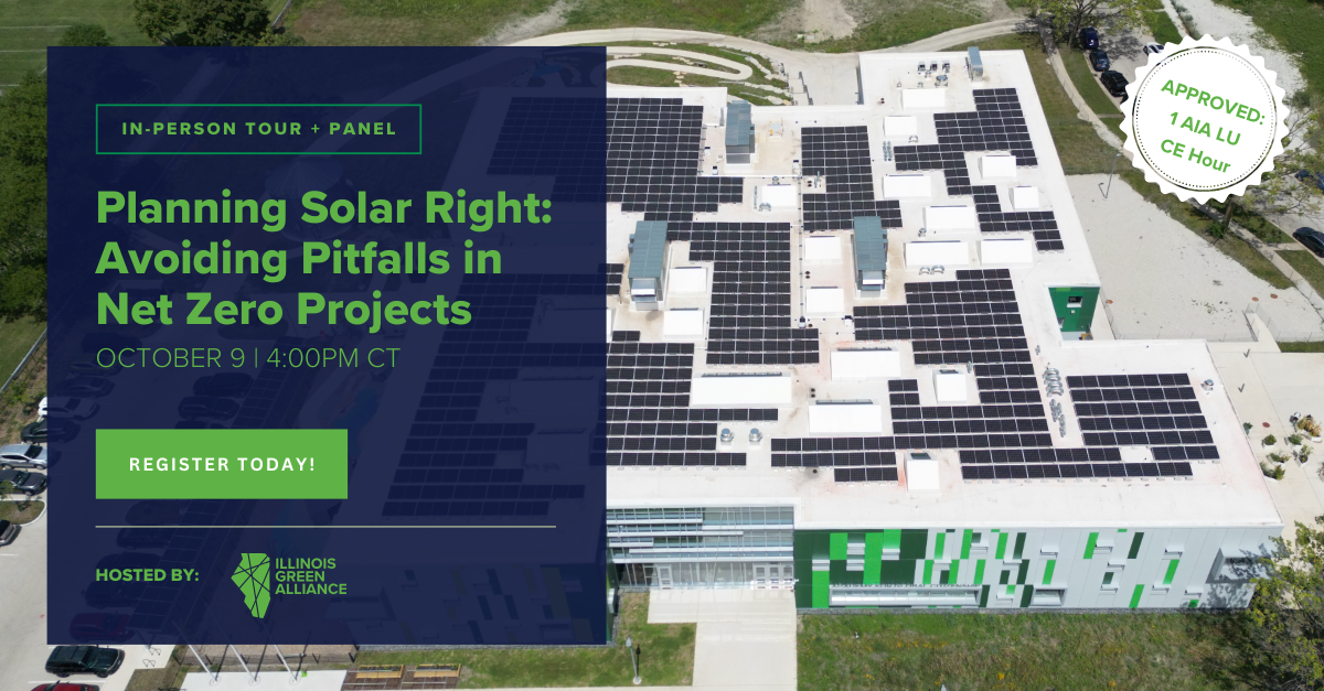 Join Illinois Green for a site tour of the Academy for Global Citizenship solar array followed by an educational panel that will explore how project teams can strategically plan for incorporating solar into their designs.