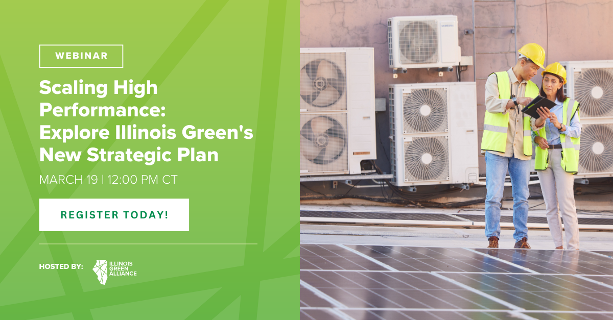 Join Illinois Green Alliance for a special webinar introducing our new 2026–2030 Strategic Plan, Scaling High Performance—a roadmap for advancing high-performance buildings and sustainable communities across Illinois over the next five years. Don’t miss the chance to hear how you can get involved and support Illinois’ building transformation.