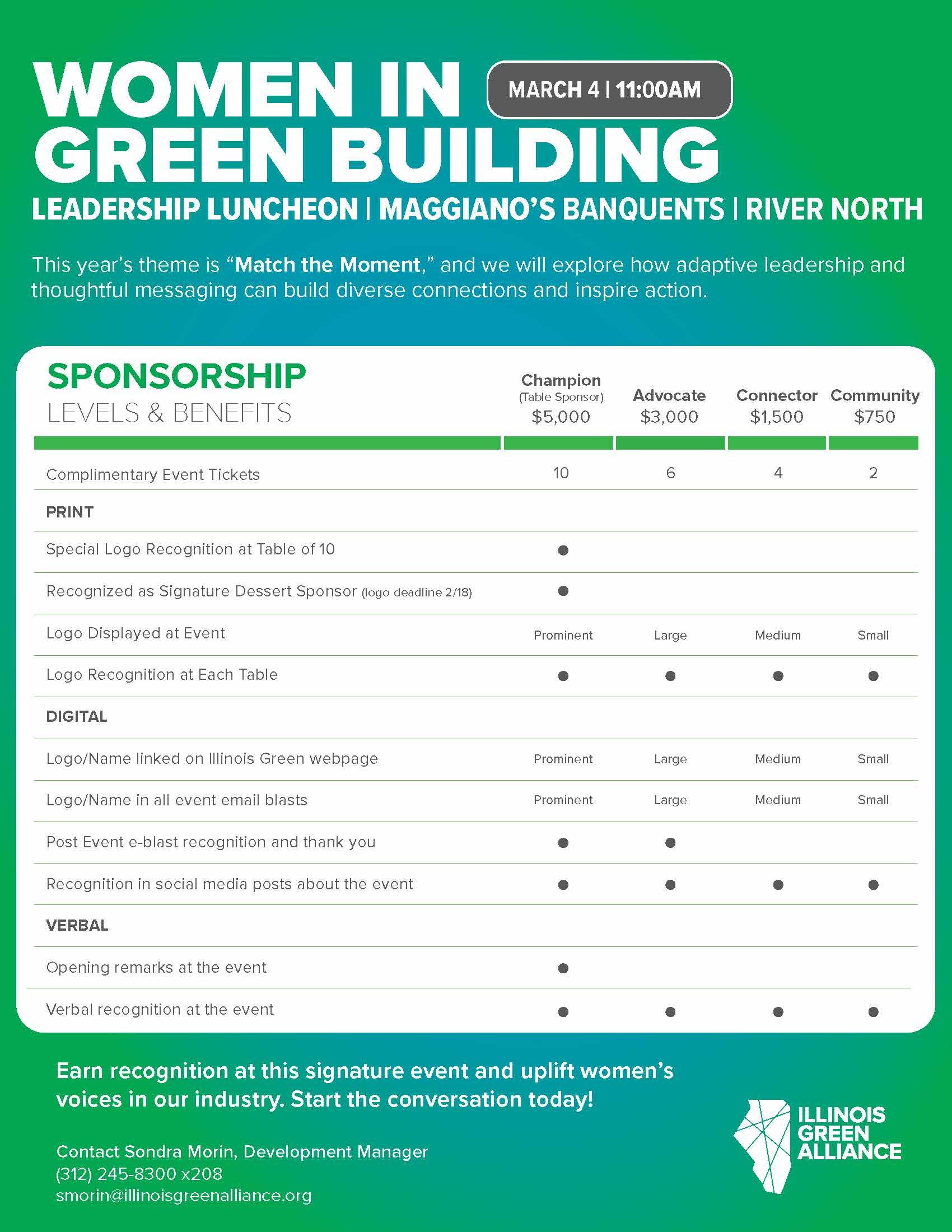 Join Illinois Green Alliance for the return of our annual Women in Green Building Leadership Luncheon, where we celebrate and engage with the influential women at the forefront of sustainability design and construction.